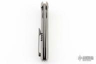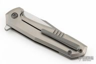 This Ragnarok V1 by Nick Chuprin features an acid-wash harpoon milled blade and flipper.  The handle has a zirc blasted titanium frame with a zirconium tip up clip, hardware and backspacer.  Nice detent, lockup and blade seating. Comes with a zippered case and COA dated 7/19/23. S/N 32. Excellent condition.
