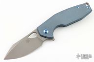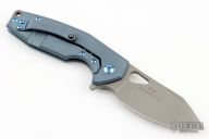 - CPM S90V blade steel with an acid stonewash finish in a reverse tanto shape.