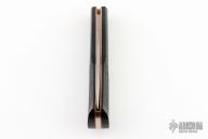 - Bog oak handle scales with copper pins and liners.
