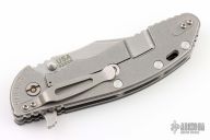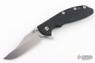 This Bowie Ground XM-24 from Hinderer Knives features a stonewash finished bowie blade with dual thumbstuds and notched thumbrest and flipper. The handle has a textured black G-10 scale and stonewashed titanium frame over titanium barrel spacers, filler tab and tip up clip, lockbar stabilizer. Has a couple light scuffs, excellent condition otherwise.