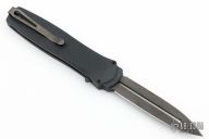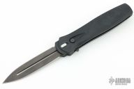 This is a Dark Angel single action out the front auto by Pro-Tech Knives features a black double-edged blade and black anodized aluminum handle. Black stainless steel clip. Safety switch. Comes with original box and papers. Has scuffs/scratches otherwise the knife is in good condition.