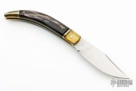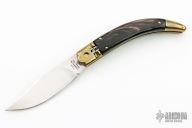 Angelo Campolin Sr. was born in 1923 in Maniago, Italy. He worked on perfecting his knife making skills before WWII and at this time made his first switchblades. After the war, in 1947 he started his company and made 30 stilettos with the marking “Angelo Campolin”. In the 1970’s Angelo’s son Gianni started to work in the company and they were specializing in folding hunting knives and also manual folding stilettos for the Robert Klaas company in Solingen Germany with their Kissing Cranes mark. In 2002 American switchblade collectors Dan Fuller, Brad West, and Tim Zinser were visiting Maniago and enjoying a few glasses of wine in a bar with Angelo Jr. and Gianni. The discussion was about a new name for some knife projects they wanted to pursue. It was Brad West that suggested the tang stamp should be AGA, for Angelo, Gianni, Angelo, thus representing three generations in the knife making business. The Campolins liked it and it stuck. In the beginning it was just a few items, but grew to the point where now there are 12 models and different scale options. The goal has been to offer quality switchblades using the old methods and traditions. Being a collector himself, Angelo Jr. knows what others like. The company headquarters has moved to Austria with production still in the original Maniago shop, as well as the others in Maniago that produce the knives for A.G.A. Campolin.