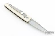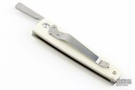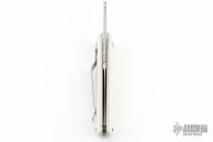 This friction folder by David Lancaster Clark features a satin finished blade. The handle has G10 scalesover titanium liners. Fileworked blade spine. Tip down stainless tip down pocket clip. New from maker!