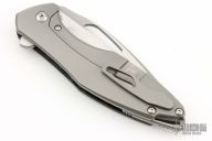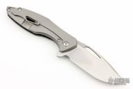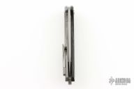 This Arius Style 55 by Koenig knives features a hand rub satin finished blade with thumbhole and notched flipper. The handle has a bead blasted and milled titanium frame, black carbon fiber front scale with Style 55 Milling, titanium backspacer and tip up clip with hidden screws. Has ceramic bearings and a ceramic detent ball. Nice detent, lockup and blade seating. Comes with original box and COA dated November 12, 2020. Excellent condition.