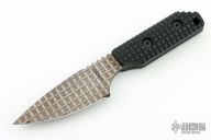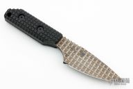 This SA by Strider Knives has a laser engraved blade with notched thumbrest, .194" blade thickness and 1.310" blade depth, full tang construction with MEFP black G-10 scales. Includes a kydex sheath. Excellent condition.
