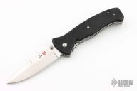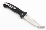 This SERE 2000 S2K - DA scale release auto has a satin finished drop/ spear point blade with false top edge and dual thumb studs. Handle is black G10 over stainless steel liners and back/ butt spacer. Lanyard hole and stainless steel tip up clip. Blade seating is dead center, excellent lockup, and strong DA side opening action. Excellent condition. Comes with original box.