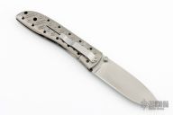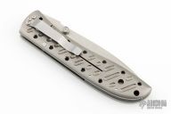 This C3O Model 4 is a collaboration between Kit Carson, Jody Carson and Mike Obenauf. It features a bead blast finished spear point blade with dual thumb studs and notched thumb ramp. The handle has a machined and tumble finished titanium frame over a black backspacer. Tumble finished tip down stainless steel clip. Excellent Condition.