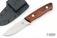 This K-1 General Utility by Dozier Knives features a satin finished blade, .133" blade stock and .968" blade depth, full tang construction. The handle has cocobolo scales with brass pins and lanyard hole. Comes with kydex sheath with belt clip. New from maker.