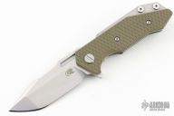 This Half Track from Hinderer Knives features a stonewash finished S45VN blade with fullers, notched thumbrest and flipper. The handle has a stonewash finished titanium frame with a green G-10 scale. Titanium clip is positioned for tip up, right hand carry. Comes with original box, Hinderer zippered case and extra hardware. Excellent Condtion.