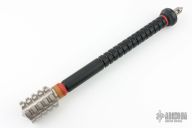 This Titanium Mace by Patrick Ober features a black linen micarta grip with red G-10 and natural canvas micarta spacers. The head is 2" in diameter stonewashed titanium and the butt is .700" in diameter with a lanyard hole. New from maker!