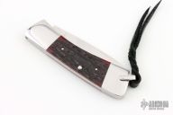 This slipjoint by Eugen Shadley features a hand rub satin finished blade with a single nail nick. The handle has stainless steel bolsters, jigged bone covers, stainless steel liners and laynard bail. Comes with zippered case. #609.  Excellent Condition.