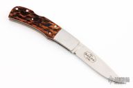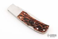 This knife by Warren Osborne features a hand rub satin finished blade. The handle has dovetailed steel bolsters and liners, jig bone scales, stainless steel backspacer. Excellent condition.