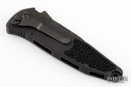 This Socom Elite Auto by Marfione Custom Knives and Borka Blades features a two-tone DLC stonewashed Borka pattern tanto blade with false top edge and notched thumbrest. The handle has a black aluminum frame with stingray skin inlays, DLC stainless steel hardware and tip down clip. Dated 01/2019 and #005. Nice action, lockup and blade seating. Comes with original box, zippered case and COA. Excellent condition.
