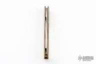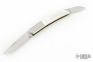 This Silver Knight by Gerber features a mirror polished blades with nail nicks. The handle has stainless steel bolsters, mother of pearl scales, brass liners, and a stainless steel backspacer. Has a couple light scratches, otherwise excellent condition.