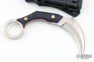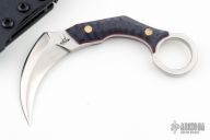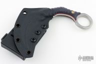 This Karambit by Shade Indonesia features a satin finished hawkbill blade, .251" blade stock and 1.018" blade depth, full tang construction. The handle has black G-10 scales over red liners with a ring at the butt. Comes with kydex sheath with belt clip. Excellent condition.