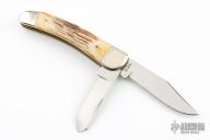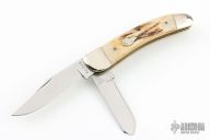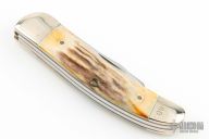 This WJK91 slipjoint by Ka-Bar features mirror polished blades with nail nicks. The handle has nickel silver bolsters, stag covers, brass liners and stainless steel springs. Has a couple light scratches, otherwise excellent condition.