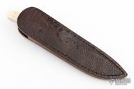This knife features a satin finish drop point blade, mirror polished steel bolsters, and warthog tusk scales, full tapered tang.  .127" Blade Stock.  1.170" Blade Depth.  Great look and feel. Excellent finish work. Includes brown leather sheath. Excellent Condition.