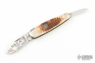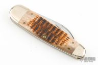 This two blade slipjoint by Case has two blades with nail nicks. The handle has nickel silver bolsters, jigged bone covers, brass liners, steel spring. Excellent condition.