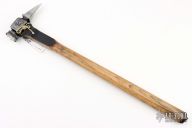 This Italian Horseman's Warhammer by Enzo Iron is forged traditionally from 1080 high carbon steel. It has a 2lb head and is 24" overall. Has a flamed hickory handle with a forged mild steel butt spike at the bottom of the handle. New from maker. Intended to be used with one hand on horseback or two hands on foot.