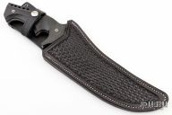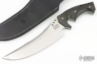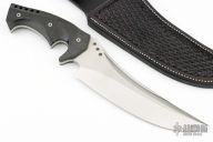 This Mamba by Walter Brend features a double hollow ground blade with a 6.5" sharpened top edge, hand rub satin finished flats and nearly mirror polished grinds, .268" blade thickness and 2.611" blade depth, full tang with carbon fiber scales and mosaic pins. Beautiful work. Includes a hand tooled black leather sheath by Jamey Taylor Leatherworks, and a nylon zippered case. Has "Etowah, TN." logo. Knife is in excellent condition and shows no signs of use. NOTE:  Walter rarely works with carbon fiber, infact he hates it. This is one of few knives with carbon fiber.