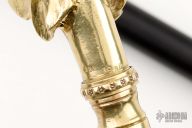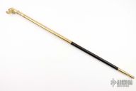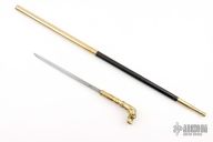 This sword cane by Armenian Doctor Knives features a Zladinox Damascus blade with .159" blade stock and .441" blade depth, hidden tang construction. The handle of the sword and cane is cast and carved bronze. The length of the knife portion of the cane is 10" blade and 15.5" overall, the cane in total is 32" overall. The cane is bronze and ebony wood. New from maker!