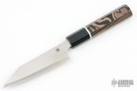 The blades of Itamae Series knives are expertly crafted from laminated steel consisting of an Aogami Super Blue core clad between layers of SUS410 stainless steel. This classic three-layer construction allows the outer layers to protect and support the ultra-hard carbon-steel center layer that forms the blade's edge. Ground exceptionally thin and straight for unparalleled cutting performance, the blades also feature Murray Carter’s signature "Carter Elbow"—a distinctive taper from the spine to the point that reinforces the blade's tip.
