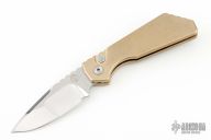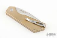 This Pro-Strider PT by Pro-Tech and Strider Knives features a Mike Irie hand ground and mirror finished blade with notched thumbrest. The handle has a tumbled aluminum bronze frame with stainless steel tip up clip. Includes the original box and papers. Excellent Condition.