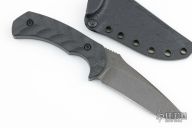Made from CMP 154 steel, this blade features a short swerve grind, which reinforces the tip and minimizes resistance when penetrating tough surfaces. With an overall length of 8.5”, a weight of 7.5 oz. and blade thickness of 0.1875”, the Mullet successfully fills the gap in our assortment, as a midsized, fixed blade, slightly larger and heavier than our Krypteia. The Mullet is fitted with G10 or ebony handles and a Toor Knives signature texture, leaving large enough flutes for an extremely comfortable in-hand grip.