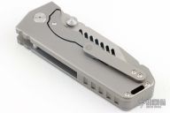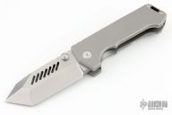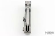 This Alpha Beast from PMP Knives features a stonewashed blade with a notched thumbrest and dual thumbstuds, .390" blade stock.  The handle features a bead blasted titanium frame with a matchig tip up pocket clip and backspacer with lanyard hole. Includes a padded zippered case. Excellent Condition.  #028 of 280
