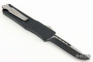 This Combat Troodon OTF automatic features a black S/E blade. Black aluminum frame. Stainless steel clip, tip down carry. Glass breaker. Serial number 09602 and dated 04/2014. Comes with original box and papers. Has some scuffs and a nick on the front of the frame, otherwise good condition.