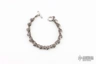 This bracelet by Starlingear is made of sterling silver. It has skull and links construction, 8.5" overall. Comes with drawstring bag and warranty card. Excellent condition.