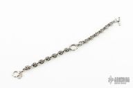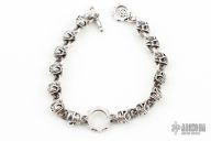 This bracelet by Starlingear is made of sterling silver. It has skull and links construction, 9.5" overall. Comes with drawstring bag and warranty card. Excellent condition.