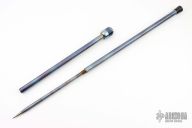 This Titanium Spear-Mace Cane by Pavlin Shahanov features a flamed finish and a hidden spike. If you unscrew the cane from the middle you will have one short spear and one mace. The cane is made from 3 parts and can be assembled like a long spear-mace by removing the rubber stopper and screwing the end of the spear into the mace. New from maker.
