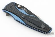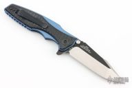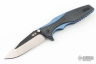 ZT's 0393 pairs an aggressive Rick Hinderer design with a solid Zero Tolerance build to create a substantial EDC folding knife. The 0393 sports a Hinderer Maximus inspired handle with a blue anodized titanium frame, carbon fiber overlays, comes with a set of black G-10 overlays as well. Its Spanto style blade is made from CPM-20CV steel in a two-tone finish with satin grinds and DLC flats. This knife is compatible with a selection of Hinderer custom hardware to make your knife stand out from the crowd. Features: KVT ball-bearing pivot for smooth and easy one-handed opening. Reversible pocket clip for secure left or right tip-up carry. 20CV Spanto blade provides excellent edge retention, superior hardness, and piercing power. #3046. Has some wear on the clip, otherwise excellent condition.