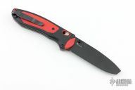 The Benchmade 591BK Boost features a 3.43" CPM-3V stainless steel opposing bevel pry-tip blade with a black Cerakote finish. It's a spring-assisted folder with an AXIS open and lock. The handles are red and black Versaflex with an ambidextrous pocket clip. It's 4.83" closed and weighs 4.49oz. Proudly made in the USA. Comes with the original box and papers. Excellent condition.