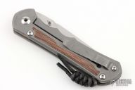 This Large Inkosi from Chris Reeve Knives features a tumble finished blade with dual blue thumb studs and notched thumbrest. The handle has a bead blasted titanium frame over a single barrel spacer with a matching titanium tip up clip. Natural canvas micarta Inlays. Comes with original box, sheath, anodized titanium clip, lanyard and tooles, COA dated June 13, 2023. Excellent Condition.