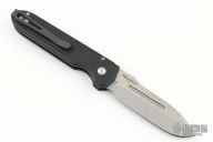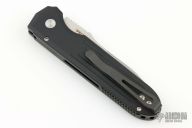 This Invictus by Pro-Tech is a Prometheus Design Werx design, it features a tumbled blade with satin finished flats and a notched thumbrest.  The handle has a black aluminum frame with a black stainless steel tip up clip, lanyard hole at the butt. Push button with red G-10 inlay and a safety.  Comes with original box and papers. Excellent condition.