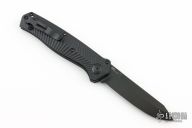 This Mediator by Benchmade Knives features a black clip point blade with a false top edge and notched thumbrest. The handle has black G-10 scales, black stainless steel liners and tip up clip, left or right reversible. Has safety. Comes with box, pouch and papers. Excellent condition.