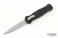 "Introducing an OTF like none-other.. The new Infidel® is rapidly making believers out of many a skeptic. Built for strength and reliability the patent pending double-action mechanics get it done over the long haul. Grab on and you will find the handle grip rock-solid with its patented machined in Presidio® style bi-directional tread pattern, and overall generous sizing for gloved hands. Intuitively pressure the release-slide forward and its spear-point edged steel fires and locks up with a unique three-point retention system with amazingly negligible blade play. Reverse the process and the blade retracts in a rapid blur of motion. The Benchmade Infidel is a special operator’s fantasy come true." Comes with original box, papers and belt sheath. Excellent condition.