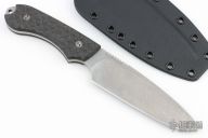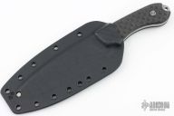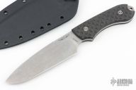 This Guardian 5 by Bradford Knives features a stonewashed finish drop point blade with notched thumbrest, .200" blade stock and 1.476" blade depth, full tang construction with textured carbon fiber scales. Comes with kydex sheath. Excellent condition.