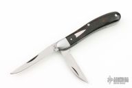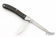 This reverse dogleg jack slipjoint from Dr. T (David Taber) features hand rub satin finished blades with nail nicks. The handle has stainless steel bolsters, rag micarta covers with stainless steel escutcheon, spring and liners. Has a couple light scratches, otherwise excellent condition. Includes zippered case.