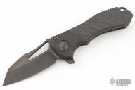 This Protocol Flipper by Marfione Custom Knives features a two-tone DLC Apocalyptic finished blade with notched thumbrest and flipper. The handle has a DLC Apocalyptic finished titanium frame with carbon fiber scales, DLC Apocalyptic titanium backspacer and hardware, tip up DLC Apocalyptic finished titanium clip with ceramic ball and hidden screws. Nice detent, lockup and blade seating. Comes with original box and papers. Excellent condition. #010 and dated 04/2021.