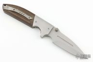 I have been a knifemaker since 1995. Since then I have been hooked on knifemaking. My knowledge in knifemaking comes from working with Butch Vallotton and Rainy Vallotton, corresponding with other knifemakers and not the least learning by trial and error. I really like the challenge of folder making. The precision and tools needed really makes it a very interesting job. I have chosen to make folders with linerlocks with ist's simple yet very reliable mechanism that have no moving parts. I like strong and solid folders so I use .050"" thick liners on all linerlocks with blade over 3"". This makes a very strong folder On the smaller knives I use .040"" liners unless you want it different. I prefer using synthetic materials for scales on my folders. I like the way Micarta, G10 and carbon fiber looks and performs on them and it leaves out any shrinking and shifting of the materials. I use some natural materials from time to time such as Pearl and Mammoth ivory. I like bolsters and offer them on most of my folders. These can be left handrubbed or polished. I make all my pocketclips my self and design one for each model I make. On the pictures you might find different clips for the same model as I have tried several designs on most models but in the end I decide on one clip design.for each model. I design all my folders in a CAD program to be able to get the design as efficient as possible. By using this method I can control every little detail down to a fraction of an inch and it provides me with exact blueprints for each part. One detail commonly overlooked in folder making is the blade to handle ratio. I feel it is very important to have as much blade as possible in a folder. All my models at this moment are designed with a thumb stud but I have made a few of them with a nailnick to as an option. If you have a special request just ask.