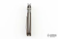 This D/A Auto by Thomas Vallotton features a bead blasted blade with dual thumbstuds and a notched thumbrest. The handle features stainless steel bolsters micarta scales over bead blasted titanium liners and a tip down pocket clip, stainless steel backspacer. Comes with a nylon sheath. Nice action, lockup and blade seating. Has some light scuffs/scratches, otherwise good condition.
