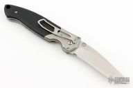This SX D/A by Larry Davidson is a TAD Gear edition, it features a satin finished recurve blade with a single ramped thumbstud. The handle has satin finished titanium bolsters, black G-10 scales, titanium liners, backspacer and tip down clip. Nice detent, lockup, action and blade seating. Comes with a nylon velcro case. S/N 004. Excellent Condition.