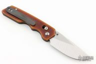 This Mark 3 by A2D Mercantile features a satin finished blade with dual thumbstuds. The handle has Vintage Carmel G3  scales, blackened titanium liners and tip up clip. Nice lockup and blade seating. Comes with zipper case. Excellent condition.  Dated Oct 2023