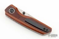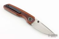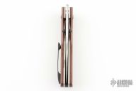 This Nevada Sr. by Chad Nell features a hand rub satin finished blade with false top edge and dual thumbstuds. The handle has vintage G3 scales, titanium liners with jeweled interiors, titanium pivot collars with black titanium inlay, vintage G3 inlay in pivot, black titanium tip up clip and backspacer. Rides on bearings, nice detent, lockup and blade seating. Comes with zippered case and COA dated 7/22. Excellent condition.