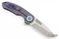 This F3 by Curtiss Knives features a two-tone stonewashed blade with notched thumbrest and flipper. The handle has a milled titanium frame with a matching tip up titanium clip. Satin stainless hardware. Rides on bearings, nice detent and lockup. Includes the original box and zippered case.  Excellent condition.