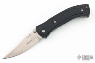This Scale Release Automatic from V&D Knives (Butch Vallotton and Matt Diskin) features a satin finished spear point blade with swedge, dual thumb studs and notched thumb rest. The handle has black polymer scales over steel liners and black polymer backspacer. Lanyard hole in pommel. Stainless steel tip up clip and lanyard hole in pommel. Includes the original box and papers. Excellent condition.