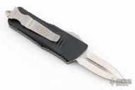 This Troodon Mini OTF automatic by Microtech knives features a satin finished double edged blade, and a black aluminum handle with bead blasted hardware, tip down carry. Glass breaker. S/N 2952. Dated 10/2021. Has a couple light scuffs, otherwise excellent condition. Comes with original box and papers.